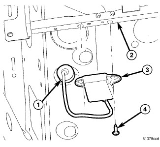 2. Thread the cable through the appropriate hole in the dash panel far enough to seat the cable grommet (1) into the hole.