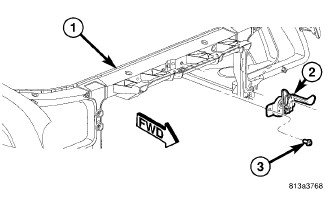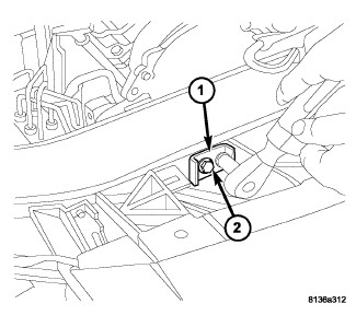 6. Position the latch (2) to the front of the crossmember (1).