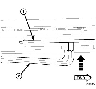 3. Push the guide assembly (1) and drive cable rearward past the hard stop location.