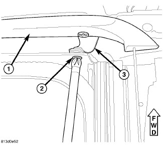 2. Rotate the deflector down, attach the straps (3) and install the strap screws (2) into the front beam.
