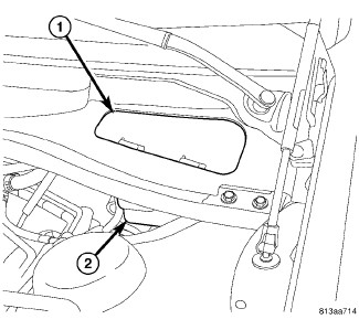 3. Remove the access panel (1) in the cowl area to expose the master cylinder (2).