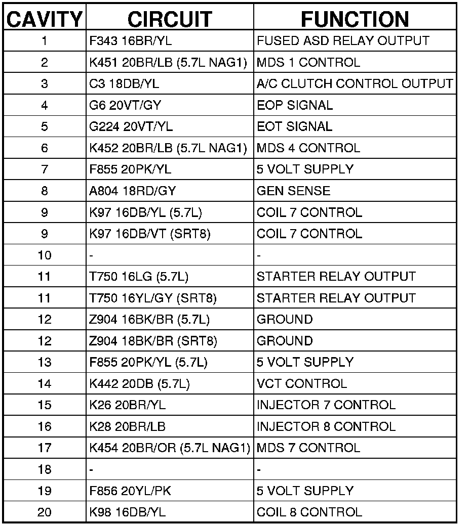 C100 (5.7L/SRT8) (Engine Side) 20 Way