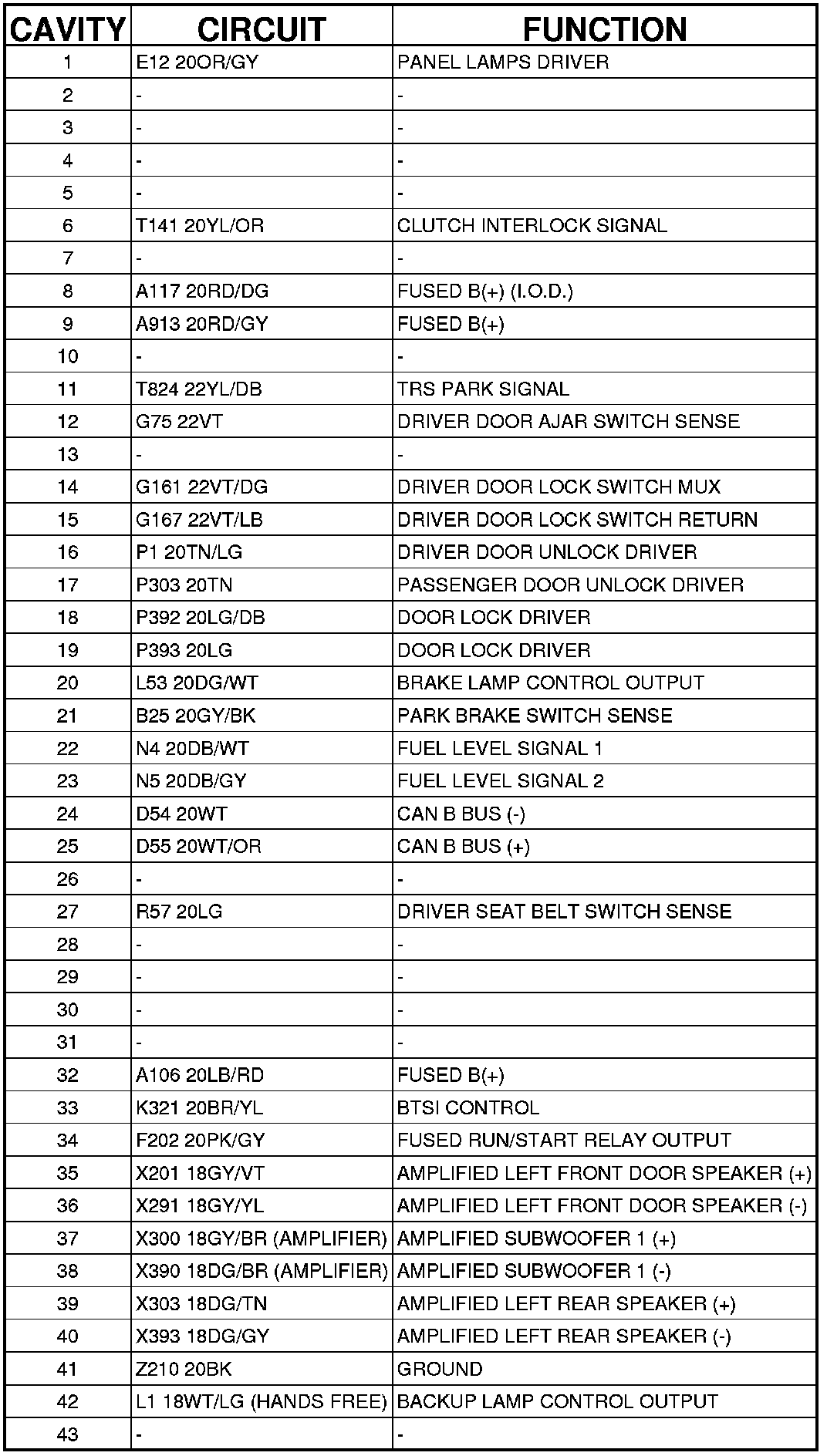 C203 (Instrument Panel Side) 43 Way