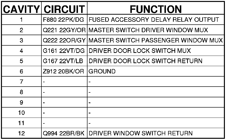 Driver Window/Door Lock Switch (Front Door) 12 Way