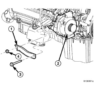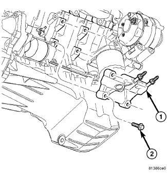 9. Remove the hydramount (3) retaining bolts (1,2) and remove the hydramount from the engine.