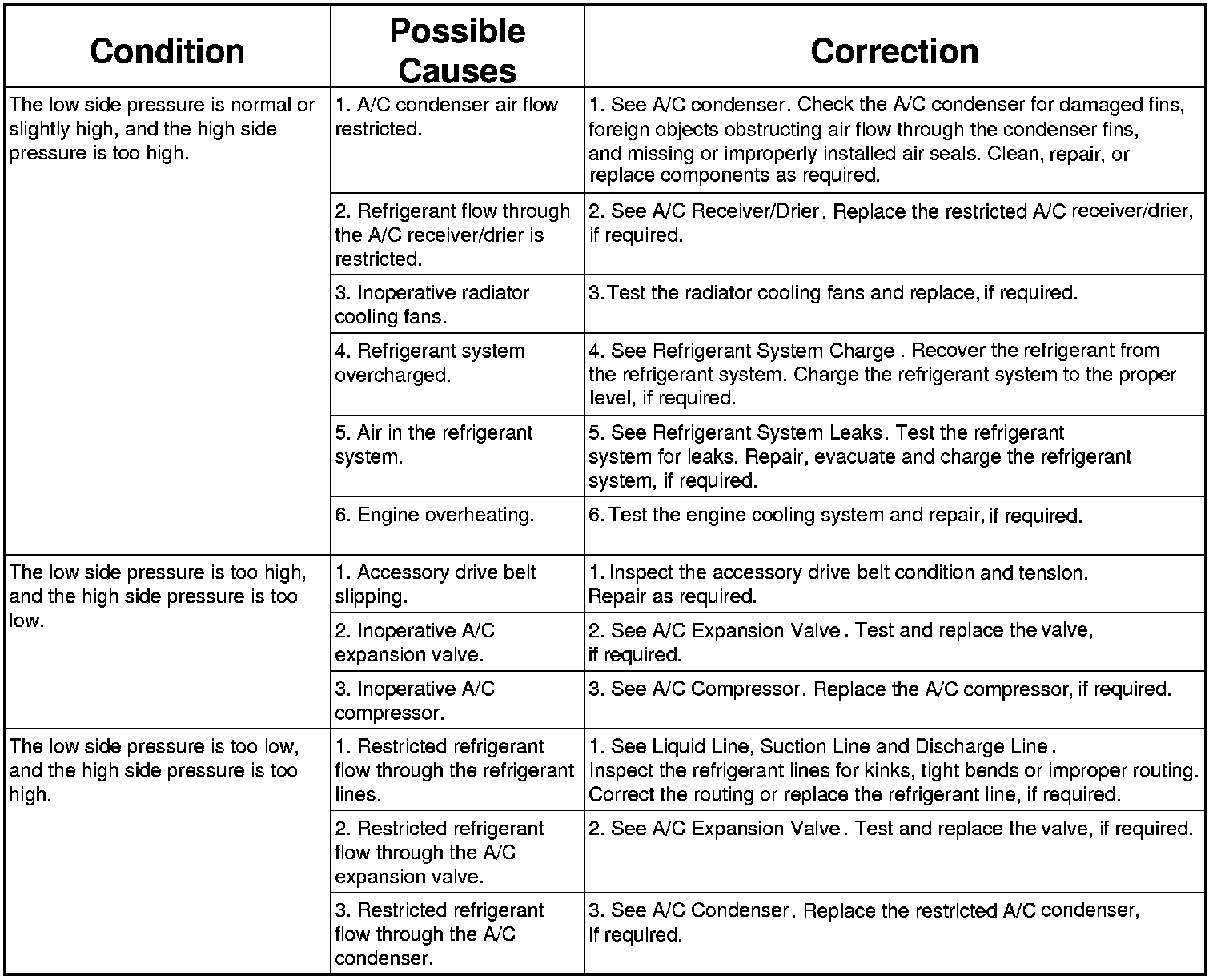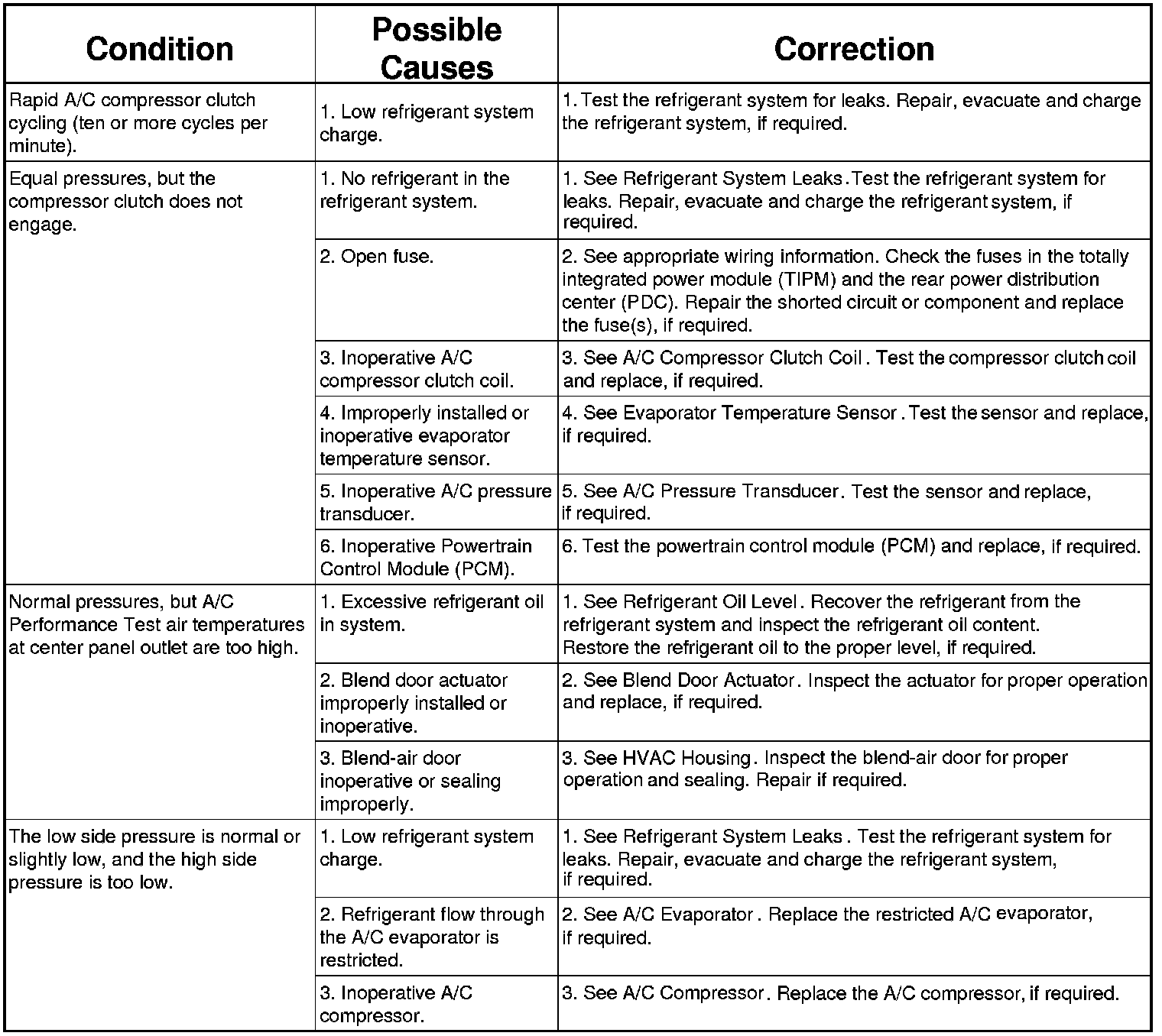 - A/C-heater controls set to Recirculation mode, full cool, panel mode, high blower and with A/C compressor engaged. If the A/C compressor does not engage, see the A/C System Diagnosis table