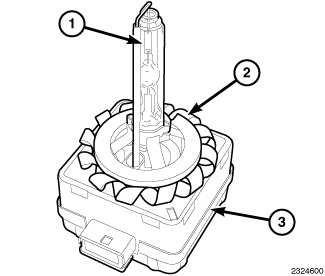 WARNING: To avoid serious or fatal injury when working on the High Intensity Discharge (HID) headlamp system, be certain to take the proper precautions. The headlamp switch must be in the OFF position. Disconnect and isolate the battery negative cable. There is a risk of death caused by contact with high voltage used in the HID headlamps. There is a risk of explosion or fire caused by highly flammable materials in the vicinity of damaged HID lighting elements. There is a risk of injury caused by exposure to Ultra Violet (UV) light, a risk of burns caused by high component operating temperatures, a risk of mercury poisoning through glass splinters produced by bursting HID lighting elements. There is also a risk of poisoning caused by inhalation of mercury vapors and by toxic salts and mercury compounds being ingested or coming into contact with the skin. Do not come into contact with parts that are under high voltage. Persons with active electronic implants (e.g. heart pacemakers) must never work on HID headlamps. Wear insulated safety shoes, safety glasses and protective gloves. Remove flammable materials and ensure sufficient ventilation in the working area.