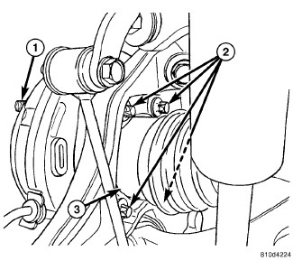 6. Install mounting bolts (1) securing caliper adapter (3) to knuckle (2). Tighten bolts to 115 Nm (85 ft. lbs.).