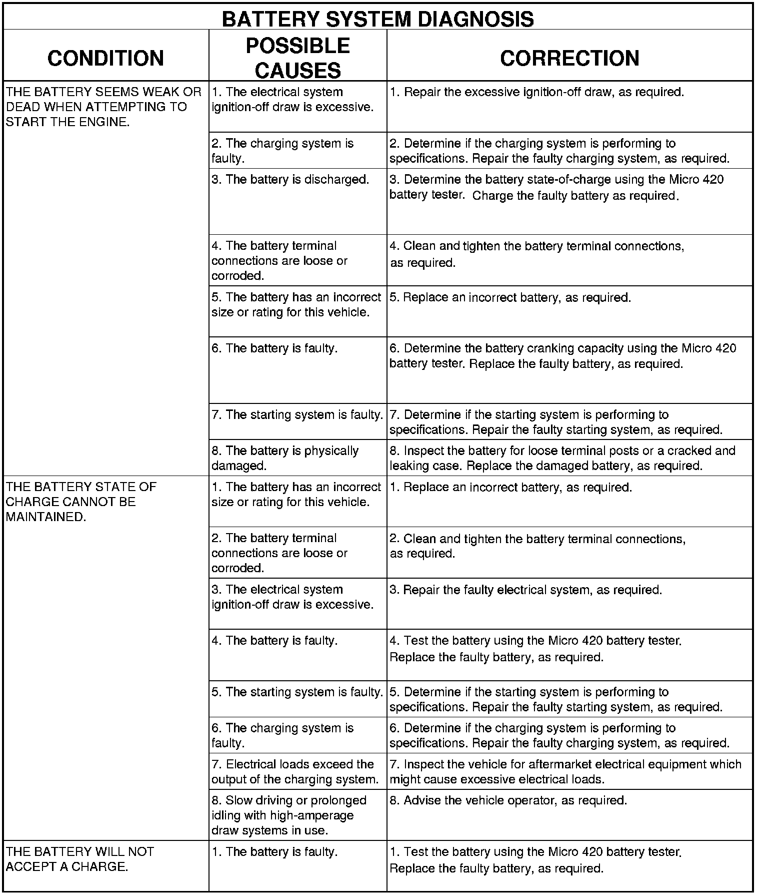 The Micro 420 automotive battery system tester is designed to help the dealership technicians diagnose the cause of a defective battery. Micro 420 Battery Tester for directions on using the Micro 420 battery tester.