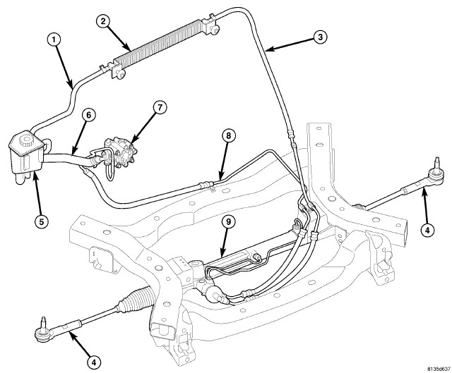 - Pump pressure (8), return (1 and 3) and supply (6) hoses