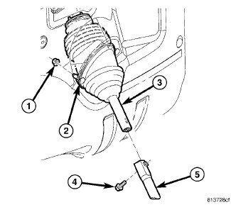 5. Check and make sure the plastic collar (2) on the column shaft is engaged in the groove within the boot (1).