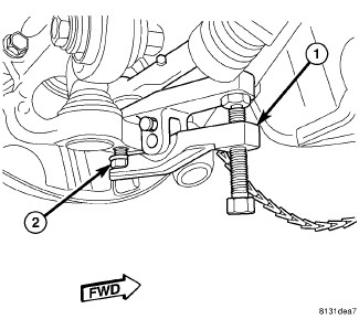 5. Using Ball Joint Remover 9360 (1) separate tension strut ball joint stud (2) from knuckle.