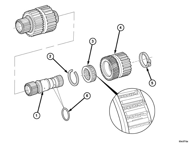 NOTE: The side of the freewheeling clutch F2 (3) with the markings (directional arrow, part number, etc.) must be up when the clutch is installed in the sun gear (4).