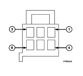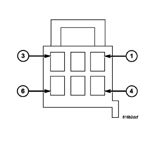 4. Check for battery voltage on terminals 4 and 6 of the switch/module connector of the inoperative seat. Battery voltage should be present on both terminals. If OK go to 5. If NOT OK repair the open or shorted fused B(+) circuit as required.