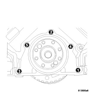 9. Rotate main bearing cap bolts an additional 90° in the sequence shown.