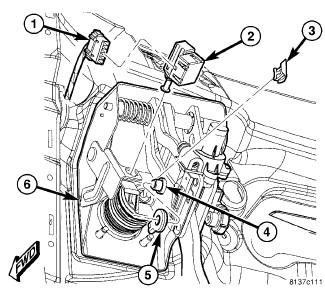 3. Mount the stop lamp switch into the bracket on the brake pedal assembly (6) as follows: Depress the brake pedal as far down as possible. Install the switch in its bracket by aligning the index key on switch with the notch in the square mounting hole of the mounting bracket. Once the switch is fully seated, rotate the switch clockwise approximately 30 degrees to lock the switch into the bracket.