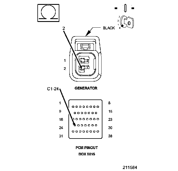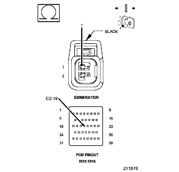 1. Using the wiring diagram/schematic as a guide, inspect the wiring and connectors between the Generator and the Powertrain Control Module (PCM).