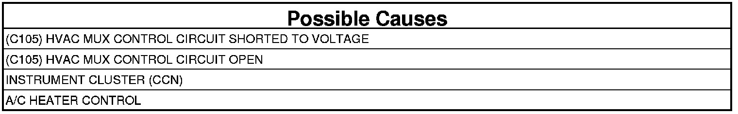 - Repair the (C105) HVAC MUX Control circuit for a short to voltage.
