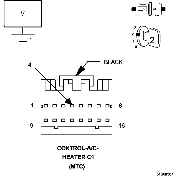 4. Measure the voltage of the (C105) HVAC MUX Control circuit.