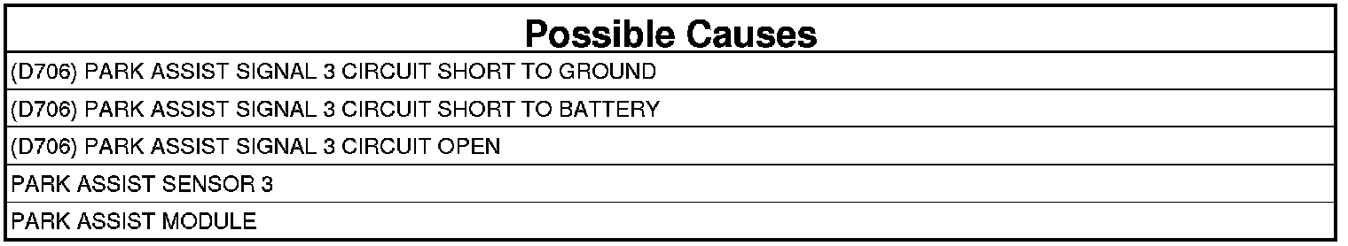 - Repair the (D706) Park Assist Signal 3 circuit for a short to battery.