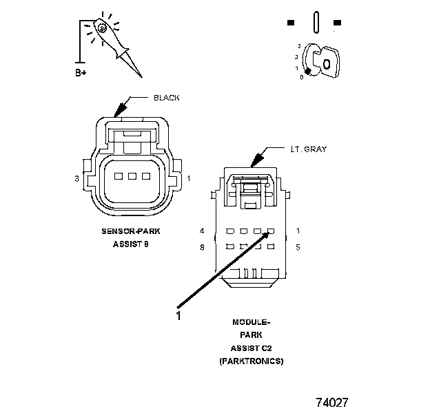 2. Using a 12-volt test light connected to ground check the (D701) Park Assist Signal 8 circuit at the Park Assist module C2 harness connector for a short to battery.
