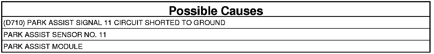 - Repair the (D710) Park Assist Signal 11 circuit for a short to ground.