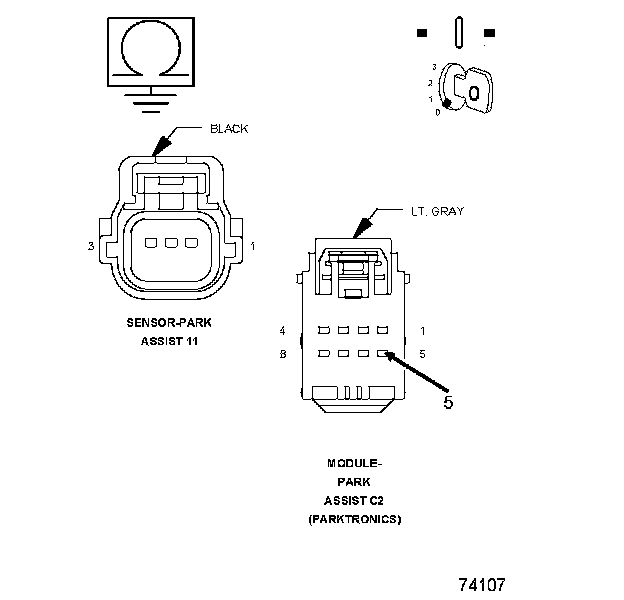 NOTE: The numbering system for the park assist sensors allows for up to twelve sensors on the vehicle, six front and six rear. The sensors are numbered in a clockwise manner starting at the left front bumper. The left front sensor (if equipped with front park assist) is the number 1 sensor. The numbering continues in a clockwise direction around the vehicle. Since Chrysler Group vehicles use only four rear sensors, sensor numbers 7 and 12 are omitted, so the left rear sensor is the number 11 sensor.