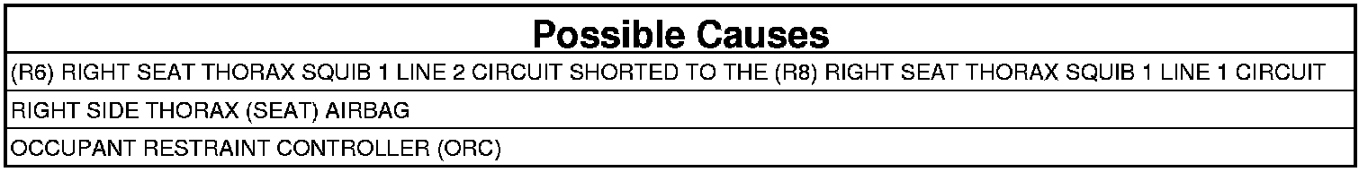 4. CHECK (R6) RIGHT SEAT THORAX SQUIB 1 LINE 2 CIRCUIT FOR A SHORT TO (R8) RIGHT SEAT THORAX SQUIB 1 LINE 1 CIRCUIT