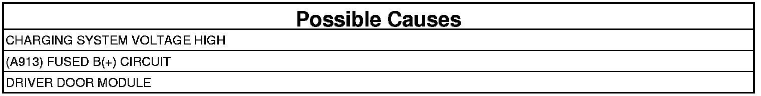 This code is set immediately after the Door Module detects voltage over 15 volts on the (A913) Fused B(+) circuit.