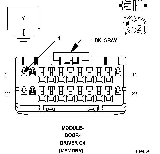 3. Measure the voltage on the (A913) Fused B(+) circuit at the Driver Door Module C4 connector and compare to voltage at the vehicle battery.