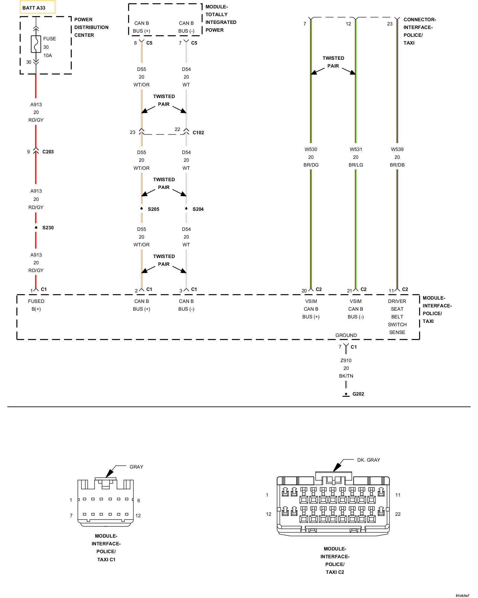 2. Disconnect all Multi-Purpose Module (Police And Taxi Interface Module-PTIM) and aftermarket light/siren controller harness connectors.