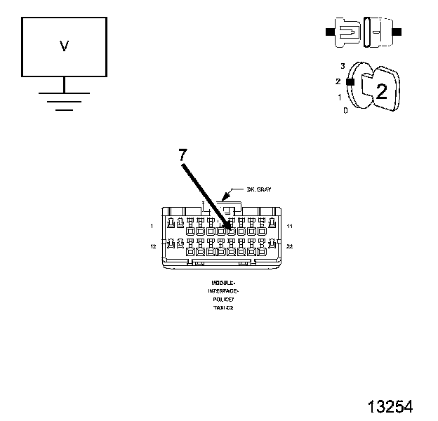 4. Measure the voltage of the (W539) Driver Seat Belt Switch Sense circuit between ground and the Multi-Purpose Module (Police And Taxi Interface Module-PTIM) C2 harness connector.