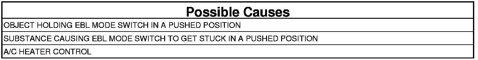 1. Inspect the A/C Heater Control for anything that would cause the EBL mode switch to stay or stick in a pushed position.