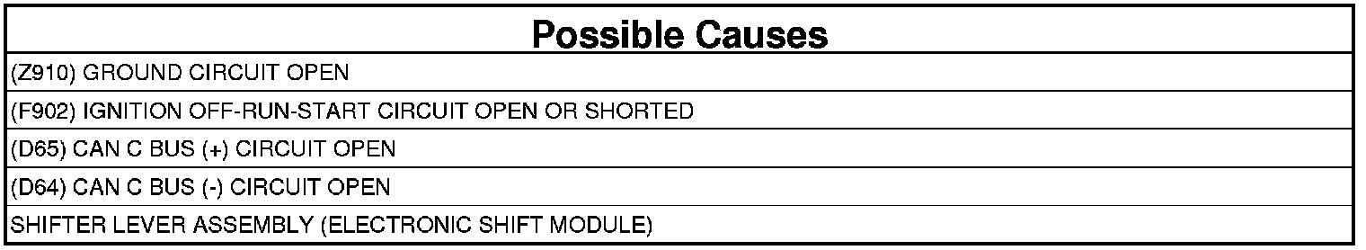 No Response From ESM (Electronic Shift Module) (Shifter Lever Assembly)