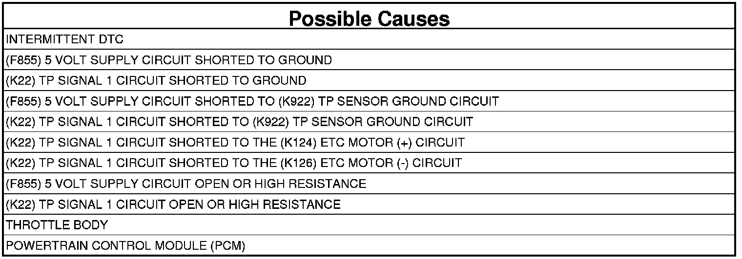 - Repair the (F855) 5 Volt Supply circuit for a short to the (K922) TP Sensor Ground circuit.