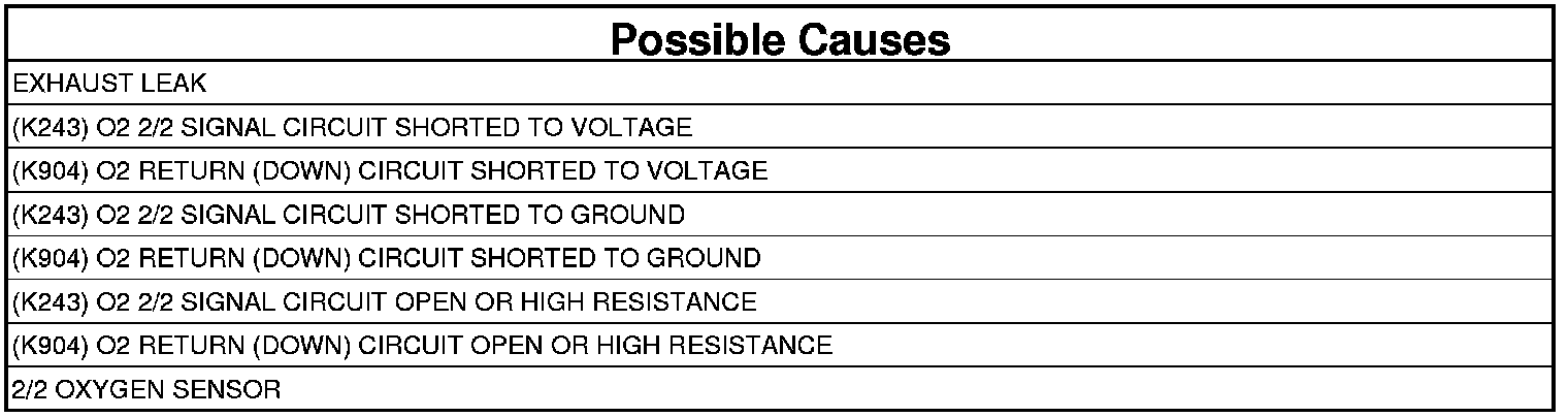 - Repair the (K243) O2 2/2 Signal circuit for a short to voltage.
