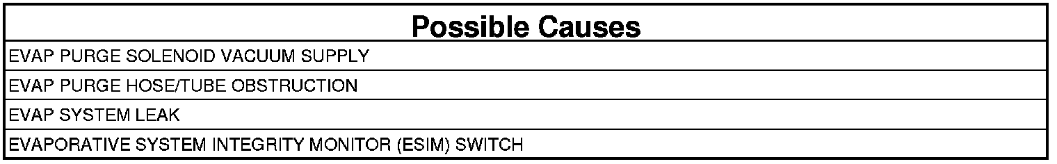 The PCM activates the Evap Purge Solenoid to pull the Evap system into a vacuum to close the ESIM switch. Once the ESIM switch is closed, the PCM turns the Evap Purge solenoid off to seal the Evap system. If the ESIM switch reopens before the calibrated amount of time, a large leak error is detected. Two Trip Fault. Three good trips to turn off the MIL.