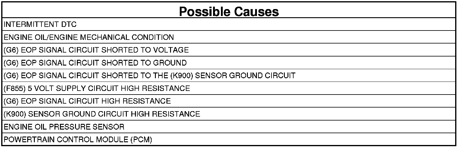 - Repair the (G6) EOP Signal circuit for a short to the (K900) Sensor Ground circuit.