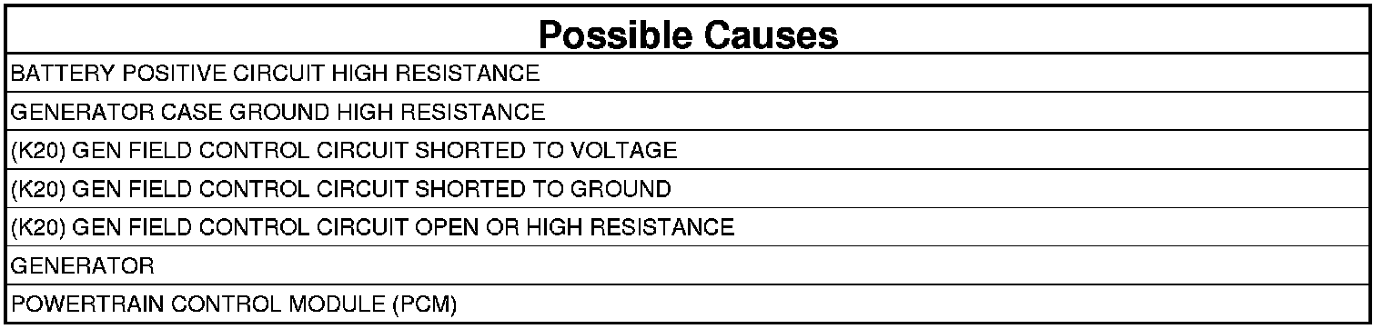 Battery voltage is 1 volt greater than desired voltage for more than 10 seconds. Battery voltage greater than 15.75 volts. One Trip Fault. Three good trips to turn off the MIL.