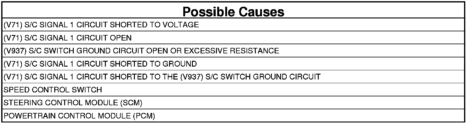 7. (V71) S/C SIGNAL 1 CIRCUIT SHORTED TO THE (V937) S/C SWITCH GROUND CIRCUIT