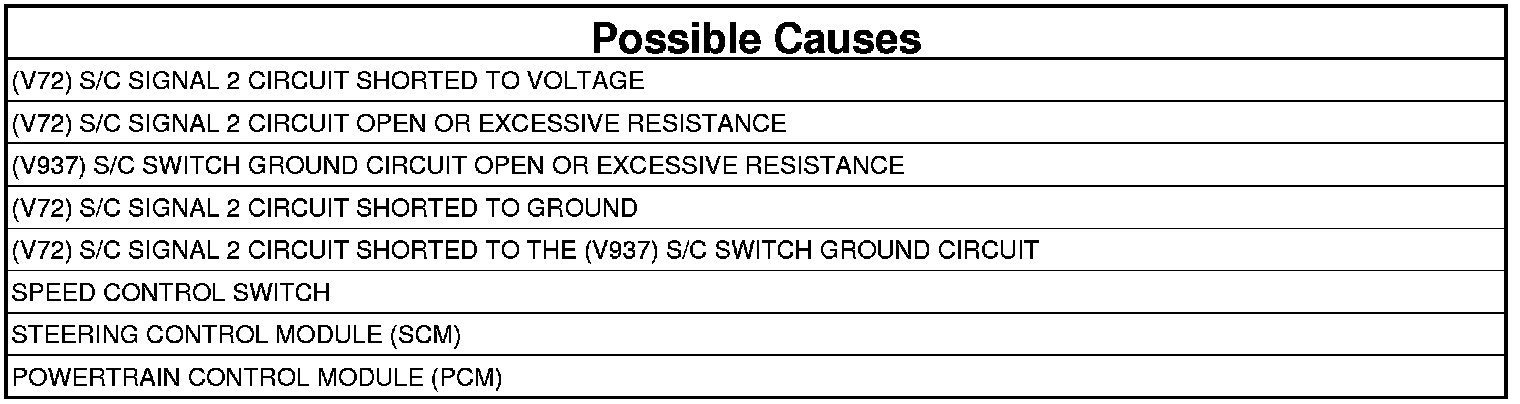 - Repair the short between the (V72) S/C Signal 2 circuit and the (V937) S/C Switch Ground circuit.