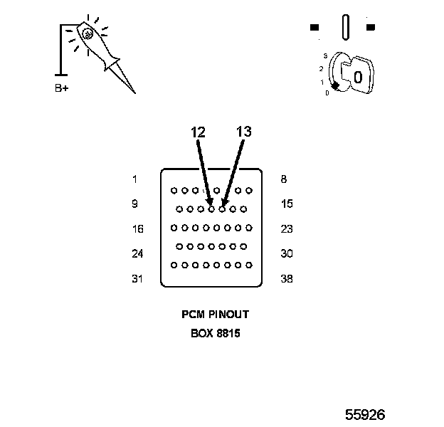 CAUTION: Do not probe the PCM harness connectors. Probing the PCM harness connectors will damage the PCM terminals resulting in poor terminal to pin connection. Install Miller Special Tool #8815 to perform diagnosis.