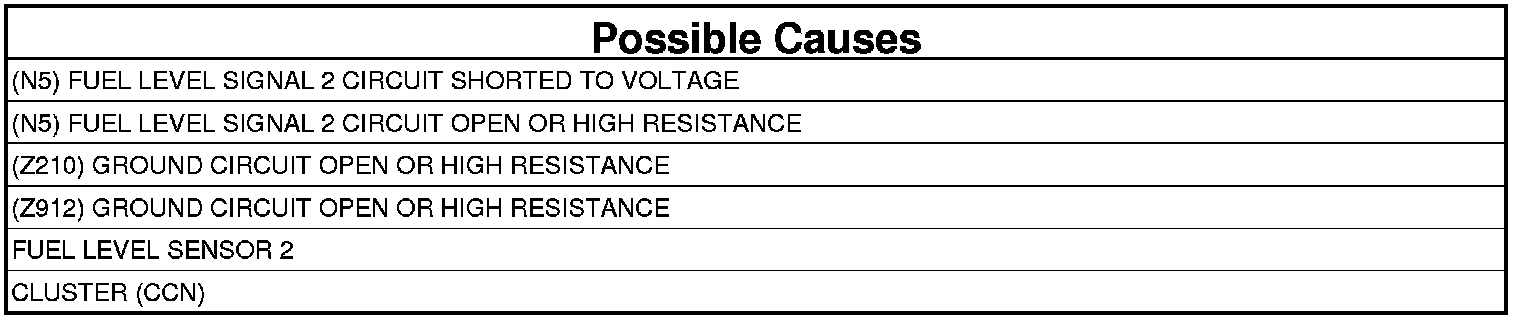 2. (N5) FUEL LEVEL SIGNAL 2 CIRCUIT SHORTED TO VOLTAGE