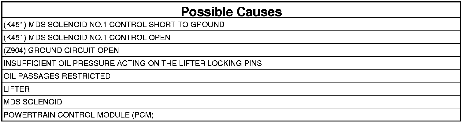 - Repair the short to ground in the (K451) MDS Solenoid No.1 Control circuit between the PCM harness connector and the C100 harness connector.