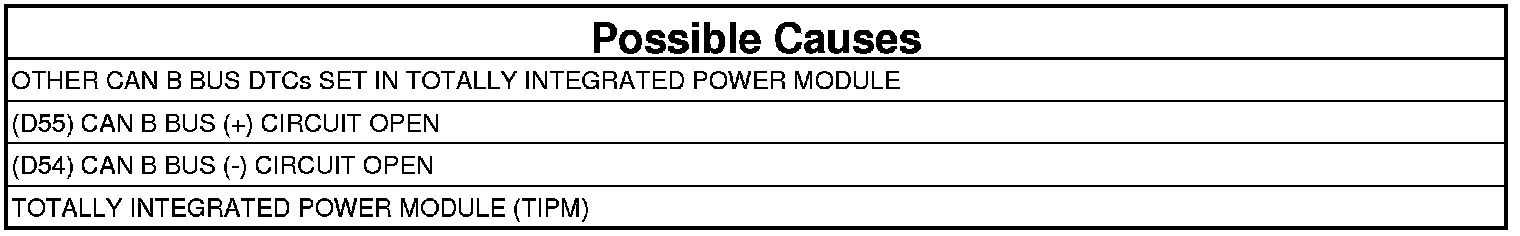 - Repair the (D55) CAN B Bus (+) circuit for an open.