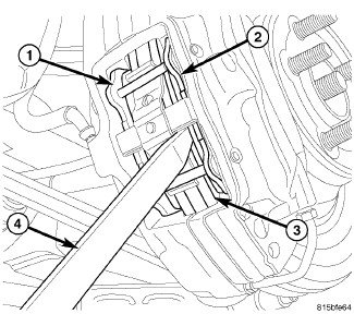 27. Remove both front (3) and both rear (2) mounting bolts fastening crossmember (1) in place.