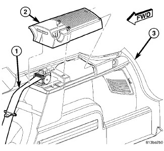 1. Position the quarter trim speaker bezel (2) to the quarter trim panel (3) above the rear wheel house.