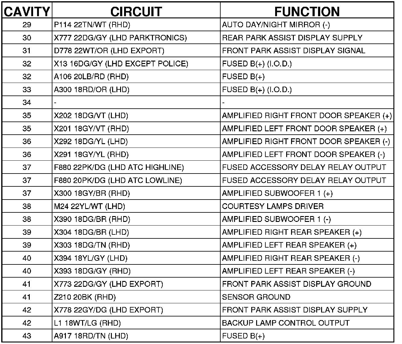 C200 (Instrument Panel Side) 43 Way