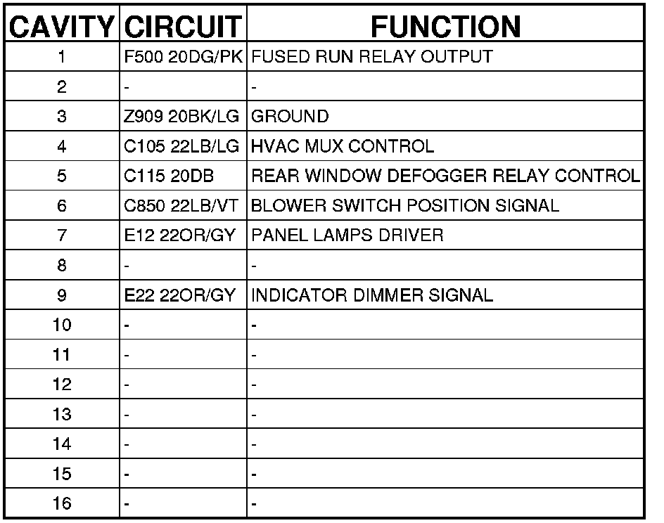 A/C-Heater Control C1 (MTC) (Instrument Panel) 16 Way