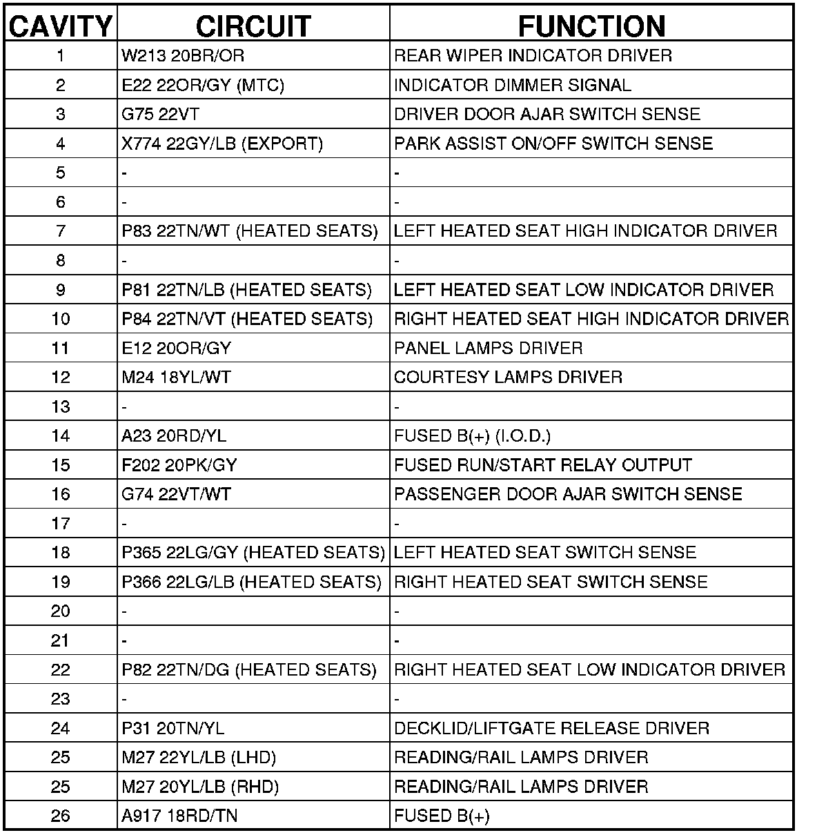Cluster C3 (Instrument Panel) 26 Way